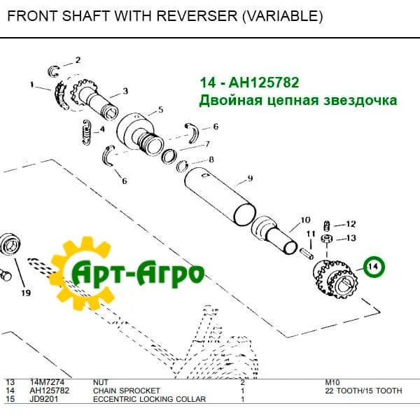 AH125782 Подвійна ланцюгова зірочка приводу реверсу похилої камери John Deere