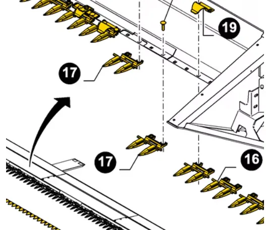 Палець подвійної жниварки комбайна New Holland. Частина пальцевого бруса забезпечує зрізання стебел зернових під час поступального руху коси.