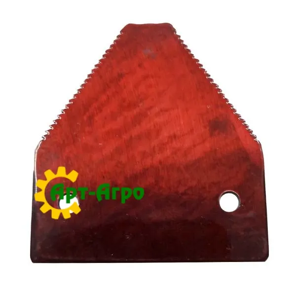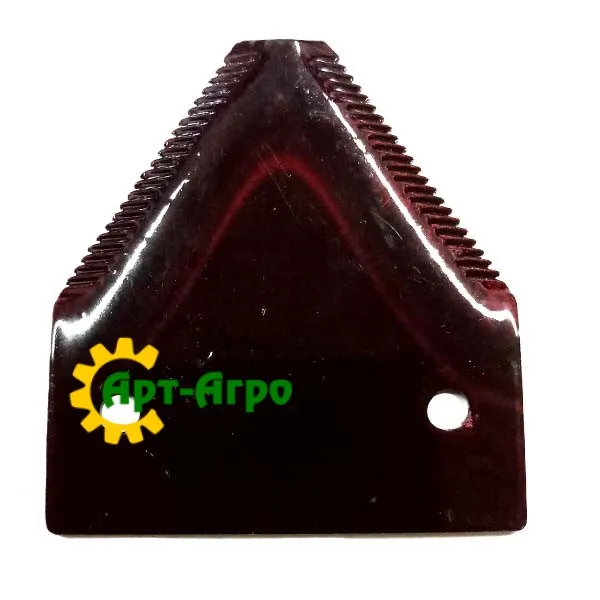 | Опис | Сегмент ножа жниварки — сталева пластина трапецієподібної форми з гострими зазубреними ріжучими кромками. Виготовляється з легованої загартованої сталі, що забезпечує високу зносостійкість і стійкість до зламу при інтенсивній роботі. Сегмент має кріпильні отвори біля основи та встановлюється на полотно ножа за допомогою заклепок або різьбового з’єднання. Забезпечує чистий зріз рослинної маси, стабільну роботу різального апарата та зменшення втрат під час збирання врожаю. Завдяки точній геометрії та стандартним посадковим отворам забезпечується щільна фіксація на ножі та стабільна робота різального апарата без вібрацій. |