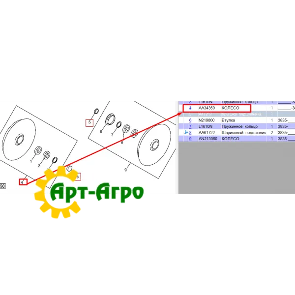 AA34350 Колесо прикат. у зборі, металеве John Deere