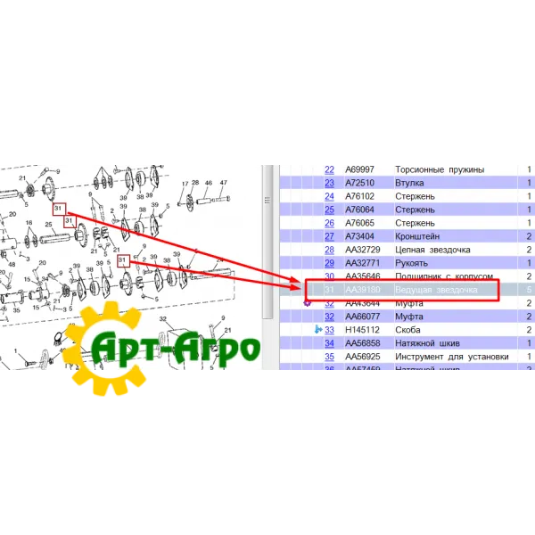 AA39180 Зірочка z = 21 (привід проміжного вала, лівий) John Deere