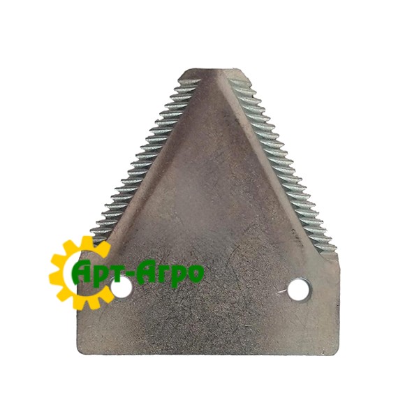 | Description | The segment of the reaper knife is a trapezoidal steel plate with sharp serrated cutting edges. It is made of alloyed hardened steel, which provides high wear resistance and resistance to breakage during intensive work. The segment has mounting holes at the base and is installed on the knife blade using rivets or a threaded connection. It ensures a clean cut of plant mass, stable operation of the cutting device and reduced losses during harvesting. Thanks to the precise geometry and standard mounting holes, a tight fixation on the knife and stable operation of the cutting device without vibrations are ensured. |