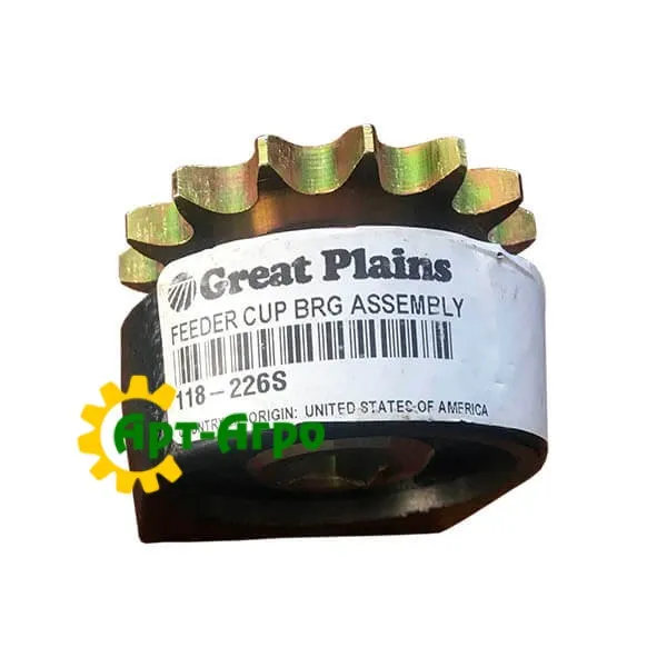 The sprocket with housing assembly (118-508D+118-336D+822-103C) for the drive of the sowing unit coils, is installed on the Great Plains equipment, the number of teeth is Z=15, the chain is 08A-1, for a 4-sided shaft. Included: 1 sprocket, 1 housing, 1 bearing, 2 retaining ring