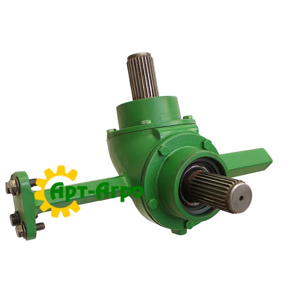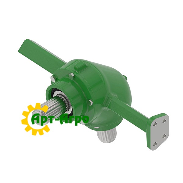 The DE19353 spare part is a gearbox (gearbox / gear case) installed in the horizontal discharge auger drive mechanism of JohnDeere combine harvesters. This is an important unit that provides torque transmission from the drive to the auger that moves grain from the hopper to the transport or unloading chute during harvesting operations.