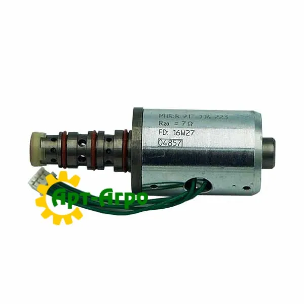 The part F931962030150 is an electromagnetic valve (solenoid valve) used in the hydraulic system of Fendt tractors. It controls the flow of fluid (hydraulic pressure), is activated by an electrical signal, and is part of the control systems for lifting, hitching or other hydraulic units.