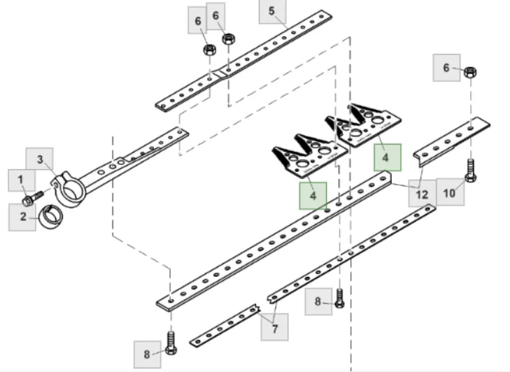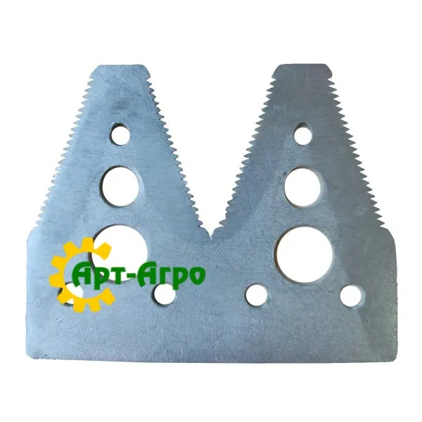 | Опис | Сегмент ножа жниварки — сталева пластина трапецієподібної форми з гострими зазубреними ріжучими кромками. Виготовляється з легованої загартованої сталі, що забезпечує високу зносостійкість і стійкість до зламу при інтенсивній роботі. Сегмент має кріпильні отвори біля основи та встановлюється на полотно ножа за допомогою заклепок або різьбового з’єднання. Забезпечує чистий зріз рослинної маси, стабільну роботу різального апарата та зменшення втрат під час збирання врожаю. Завдяки точній геометрії та стандартним посадковим отворам забезпечується щільна фіксація на ножі та стабільна робота різального апарата без вібрацій. |
