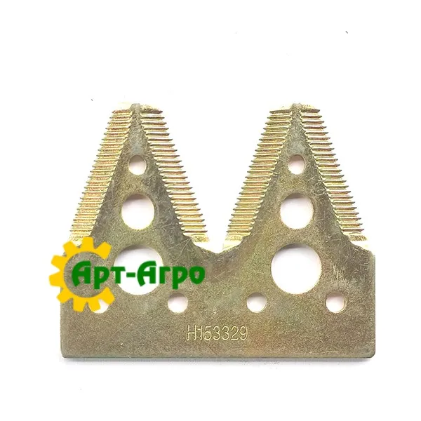 H153329 - дрібнозубий сегмент жниварки JohnDeere, призначений для стандартних і дрейперних платформ. Забезпечує точний зріз дрібнозернових культур за рахунок щільної серрейторної кромки (14 зубів на дюйм), знижуючи втрати та покращуючи якість зрізу.