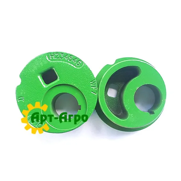 Деталь H234546 — це ексцентрик (cam) для правого важеля соломотряса (straw walker lever) зернозбиральних комбайнів John Deere. Ця деталь входить до механізму приводу соломотряса — частини сепараційної системи комбайна, що відповідає за вібраційне переміщення та транспортування соломи після обмолоту зерна. Ексцентрик забезпечує правильний кут та амплітуду руху важеля, що сприяє стабільній роботі соломотряса за інтенсивного навантаження.