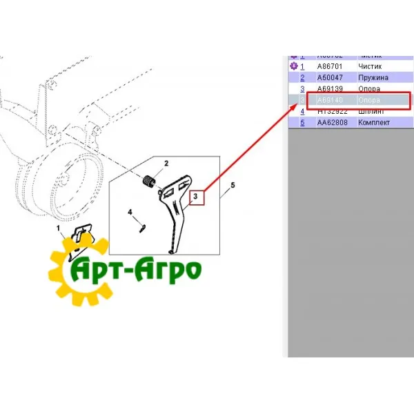 A69140 Prawy wspornik zgarniacza John Deere