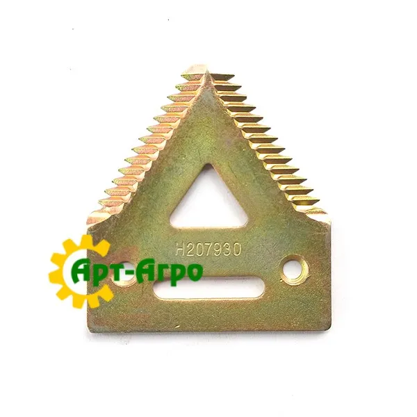 H207930 to sekcja zespołu żniwnego serii Dura-Lite firmy John Deere przeznaczona do wysokowydajnych zespołów żniwnych o twardych łodygach (np. soi, kukurydzy). Łączy w sobie wytrzymałość i lekkość dzięki środkowemu cięciu, zmniejszonej wadze i ząbkowanej krawędzi, co zapewnia czyste cięcie nawet w trudnych warunkach