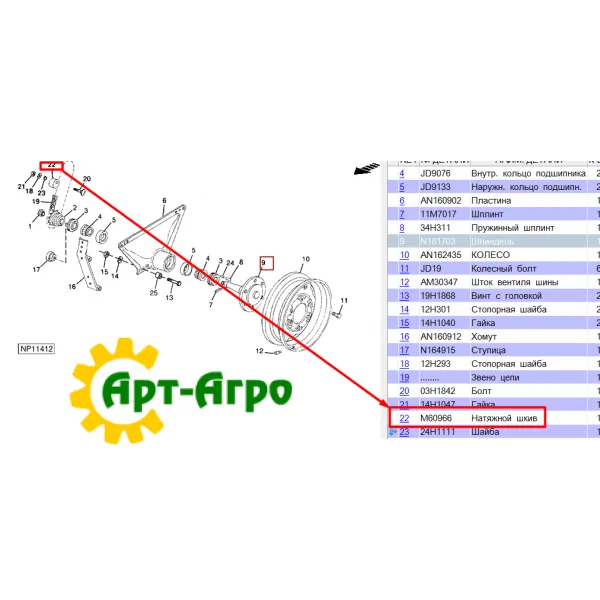 Koło napinające koła napędowego M60966 John Deere