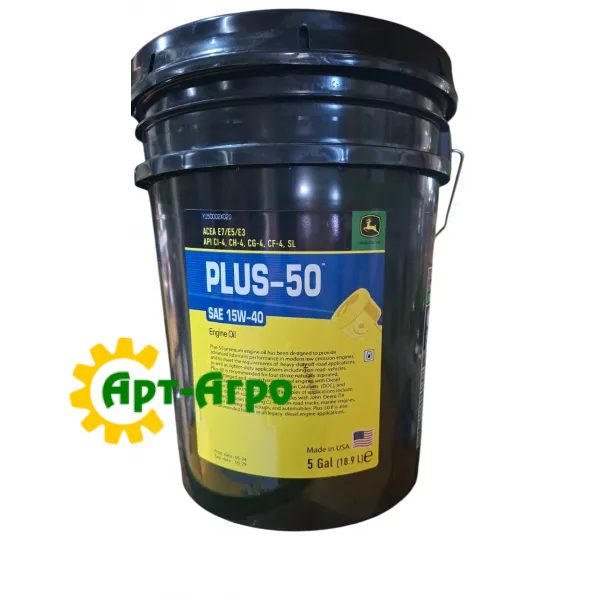 PLUS-50 II 15W-40 — це мінеральне моторне масло. Брендові джерела та каталоги описують John Deere Plus-50 II 15W-40 як “mineral motor oil”, тобто в основі мінеральні базові масла з пакетом присадок.